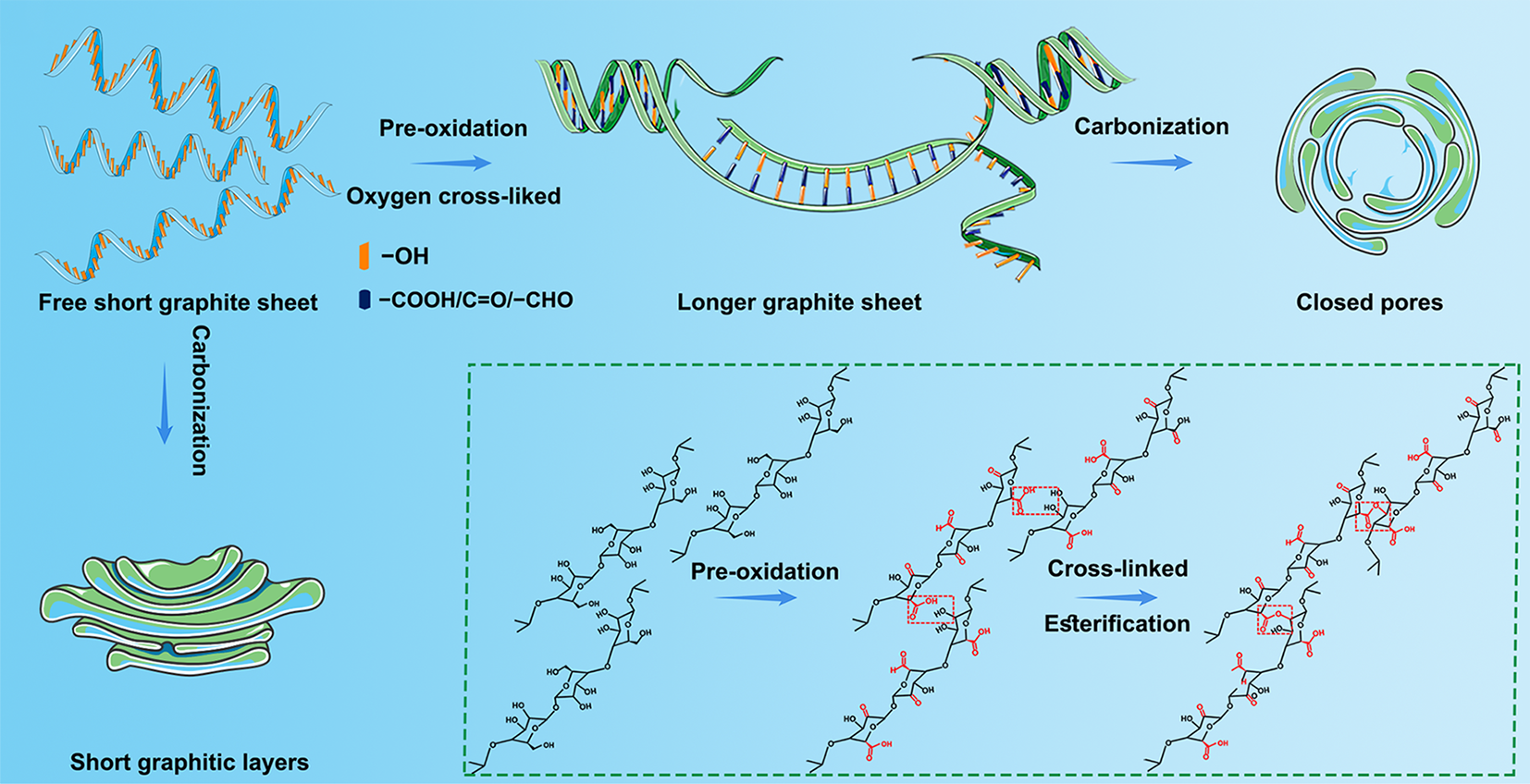 近日,国际材料领域顶级期刊《AdvancedFunctionalMaterials》(IF=19)在线发表了我校作为唯一通讯署名单位题为“DNA-Inspired Crosslinked Graphite Flakes Assemblies for Constructing Closed-Pore in Cellulose-Derived Hard Carbon”的研究论文。该研究受DNA分子交联过程的启发,采用超交联拼接策略,所制备出的钠离子电池负极材料具有优异的倍率能力和循环性能,这项研究揭示了在分子尺度层面上形成闭合超微孔隙的过程,为钠离子电池硬碳负极材料的设计策略提供了研究思路。