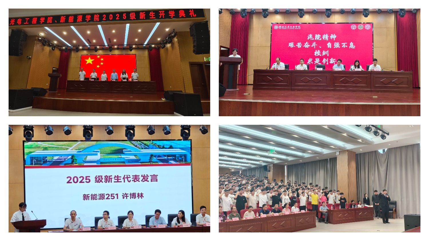 梦想启航,光电赋能新篇;新能源动,青春勇毅前行。9月13日,在在产教大楼四楼报告厅,光电工程学院、新能源学院2025级新生开学典礼隆重开幕。学院党委书记张默、院长熊永臣等班子成员,各系部专业负责人、全体辅导员、新生班主任齐聚一堂,与2025级新生共启大学新征程。典礼由学院党委副书记张朋刚主持。