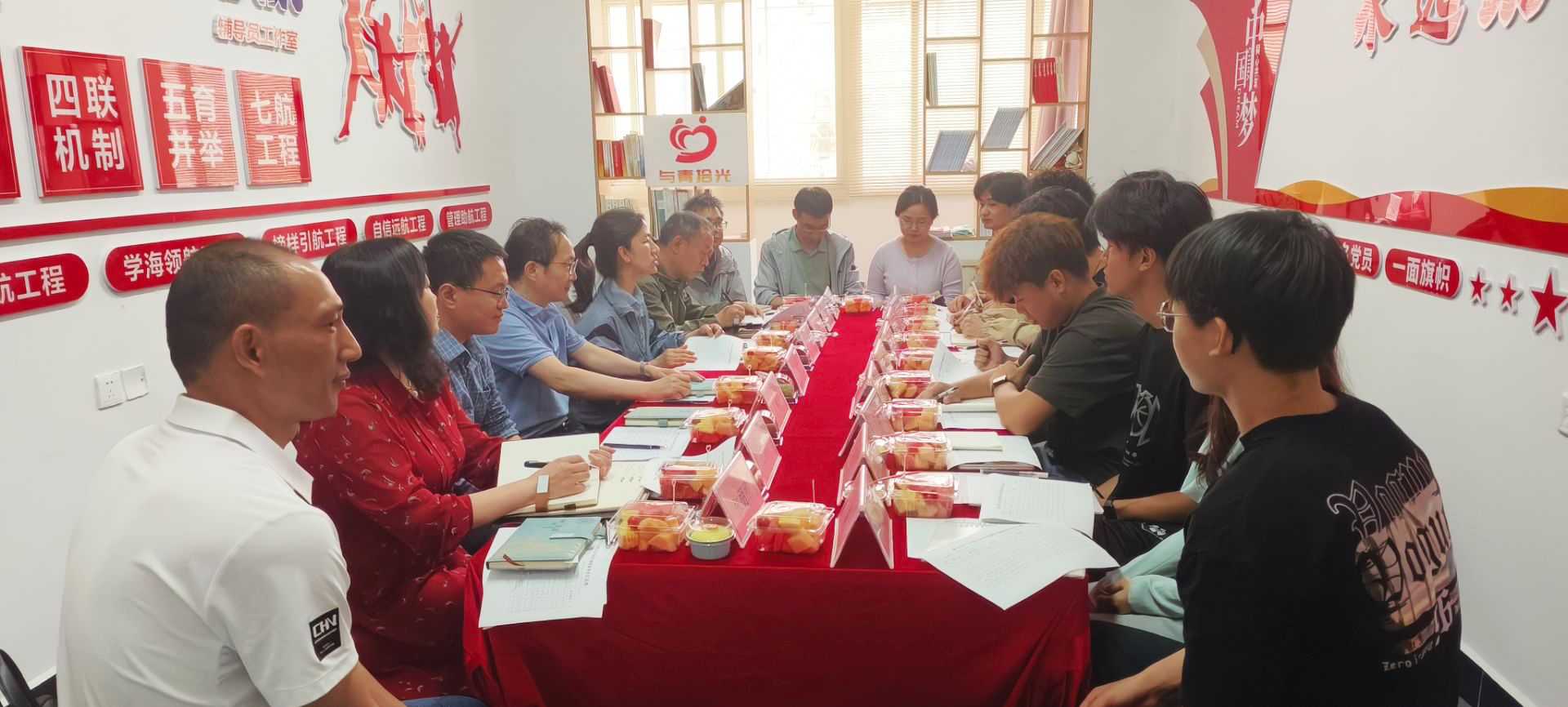 为进一步深化学海领航活动,倾听学生心声,解决学生困难与问题,4月29日中午,光电工程学院、新能源学院在李一105学生“一站式”社区举行学海领航推进暨“与青拾光”师生茶话会,太阳集团党委副书记李涛、建设管理处副处长张志华、合作发展处副处长王洪涛、继续教育学院副院长张国法、光电工程学院新能源学院院长熊永臣、副院长张传坤、党委副书记张朋刚、结对学生及所有辅导员参加,活动由光电工程学院、新能源学院党委书记张默主持。