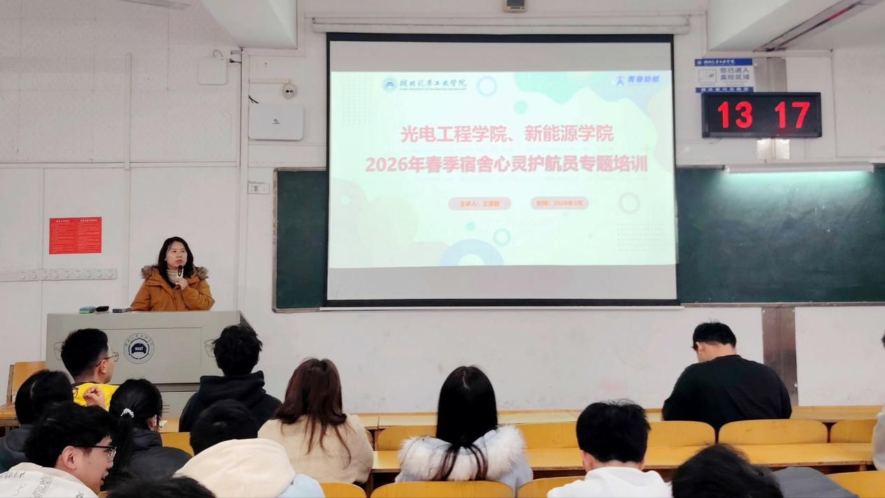 为深入推进心理育人工作,扎实筑牢校园心理健康防护网,充分发挥学生骨干在朋辈帮扶中的重要作用,3月30日中午,光电工程学院组织开展宿舍心灵护航员专项培训。学院全体辅导员、各年级生活委员、宿舍长、宿舍网格员参加。