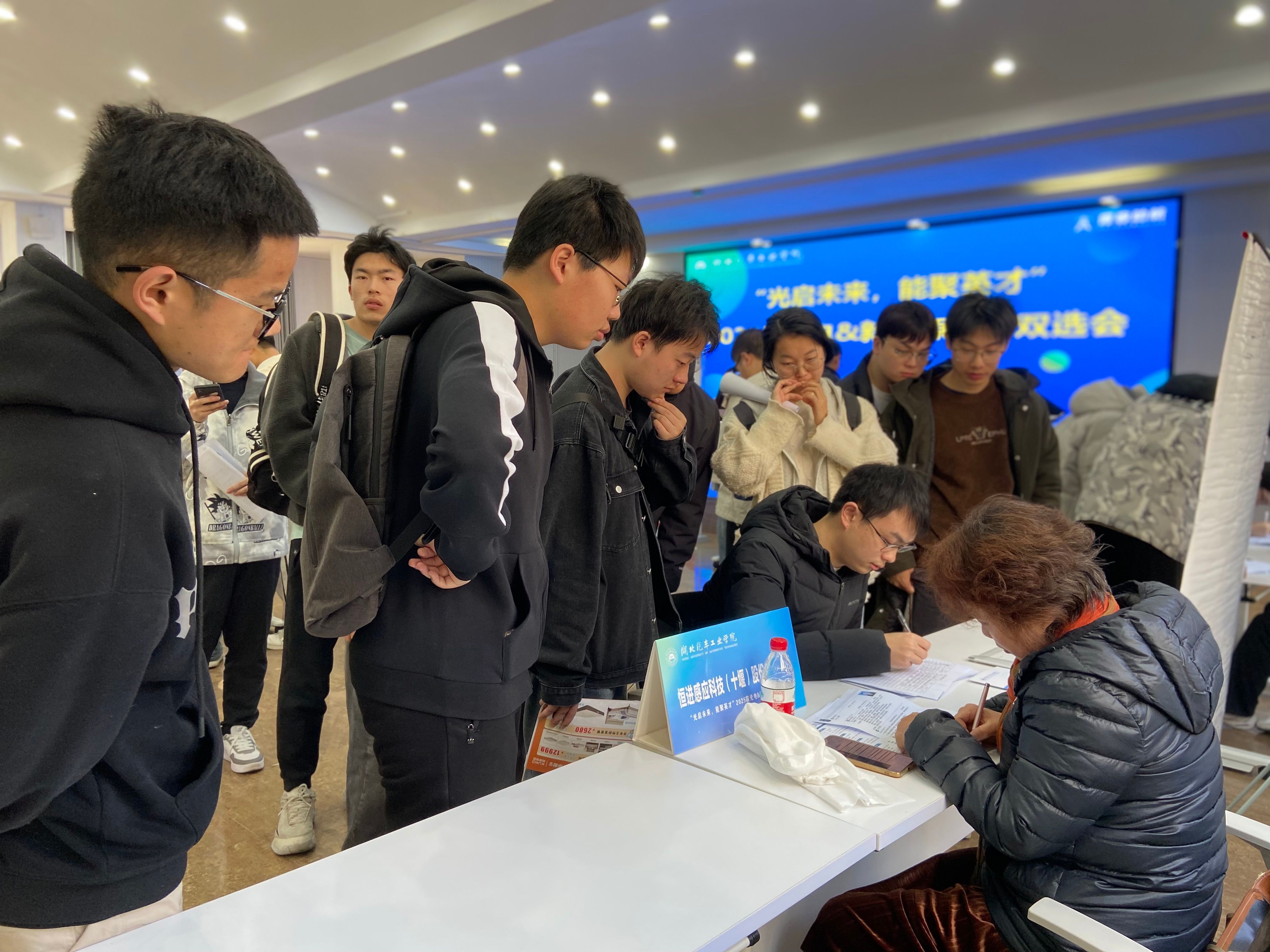 本次招聘会汇聚湖北万润新能源科技股份有限公司、恒进感应科技(十堰)股份有限公司等20家优质企业,提供涵盖机械、材料、光电、新能源、自动化、电气、工商管理、艺术、外国语言文学等领域400余个岗位。吸引近500名毕业生参加,投递简历600余份,现场求职氛围浓厚。