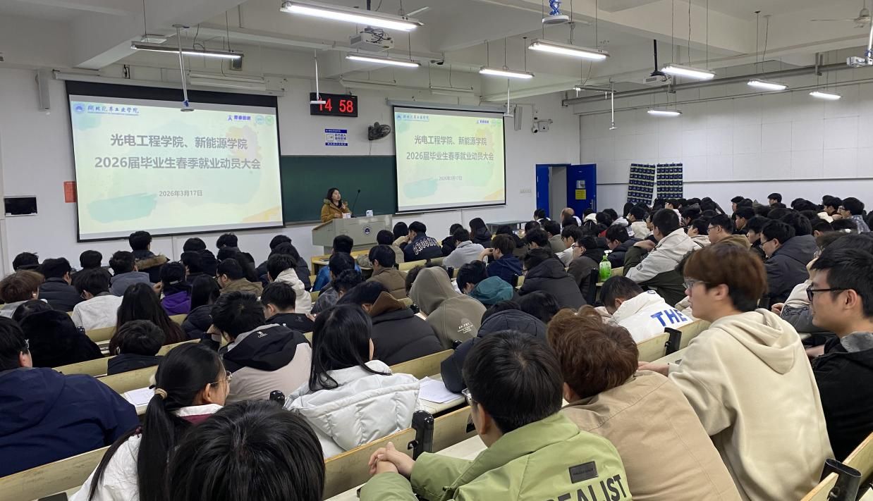 为切实做好2026届毕业生就业创业工作,引导毕业生树立正确就业观念、抢抓春季求职黄金期,3月17日下午,光电工程学院召开2026届毕业生春季就业动员大会。学院毕业班辅导员、班主任、就业辅导员及全体2026届毕业生参会。
