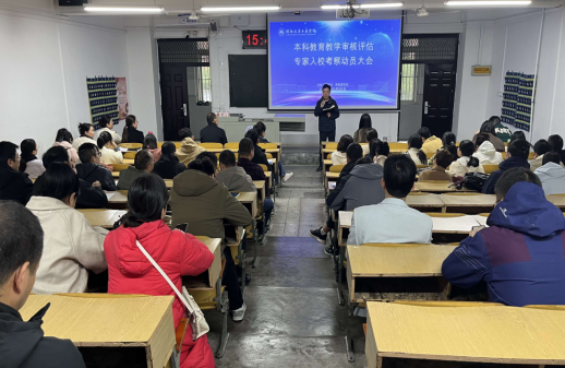 动员会上,院长助理曹名磊介绍了学校本科教育教学审核评估工作的时间和计划安排,围绕线上听课、资料整理、线下考察等方面做了强调。