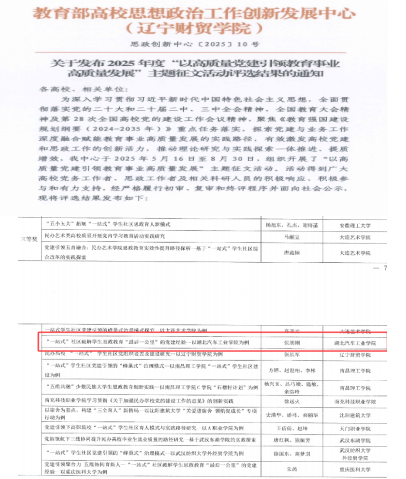 近日,全国高校思想政治工作网公布了由教育部高校思想政治工作创新发展中心(辽宁财贸学院)发布的《以高质量党建引领教育事业高质量发展”主题征文活动评选结果的公告》,我院青春助航辅导员工作室报送的《“一站式”社区破解学生思政教育“最后一公里”的党建经验——以太阳集团为例》荣获案例类三等奖。