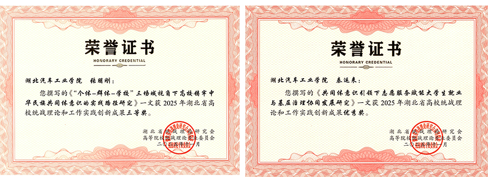 近日,湖北省高校统战理论研究会第40次学术年会在长江大学召开,会上表彰2025年全省高校统战理论研究优秀成果,我院2项成果斩获殊荣。