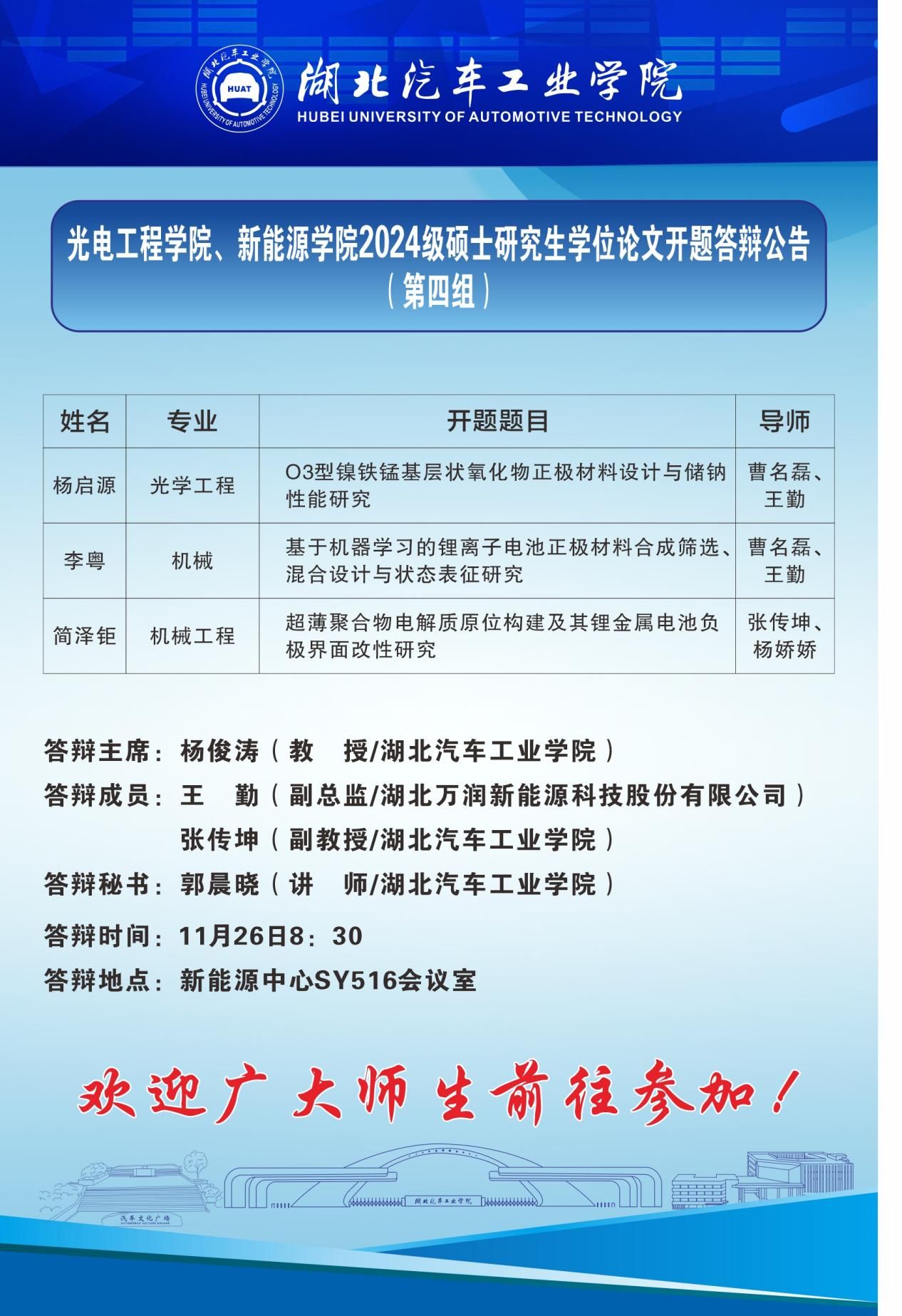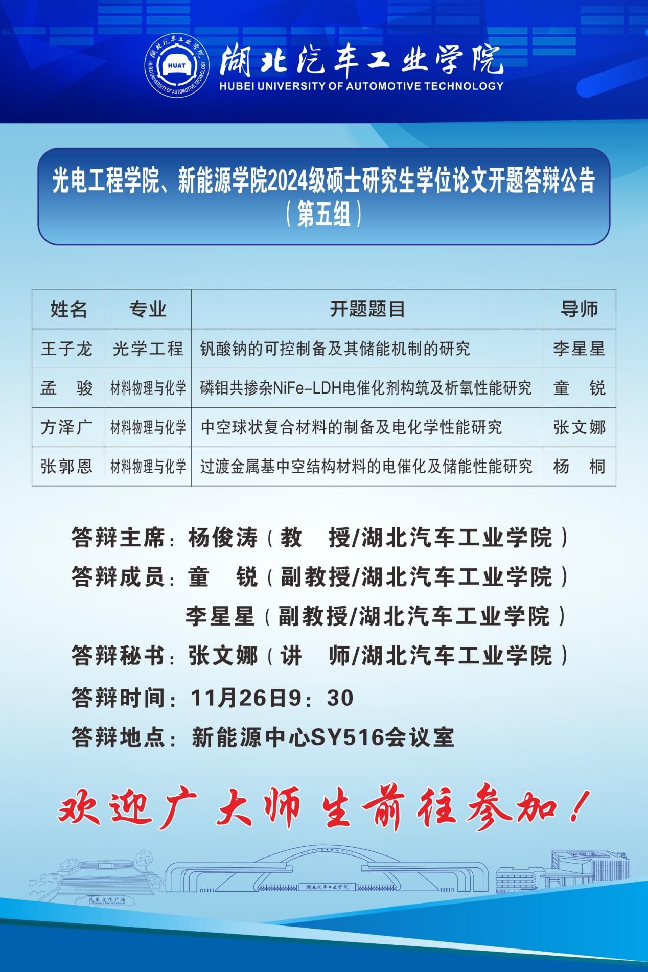 根据国务院学位委员会、教育部《关于进一步严格规范学位与研究生教育质量管理的若干意见》(学位[2020]19号)的要求,以及学校《关于做好2024级硕士研究生学位论文开题工作的通知》要求,结合《太阳集团研究生学位论文开题报告管理办法》,现将光电工程学院2024级硕士研究生学位论文开题答辩工作安排第三、四、五组公告如下: